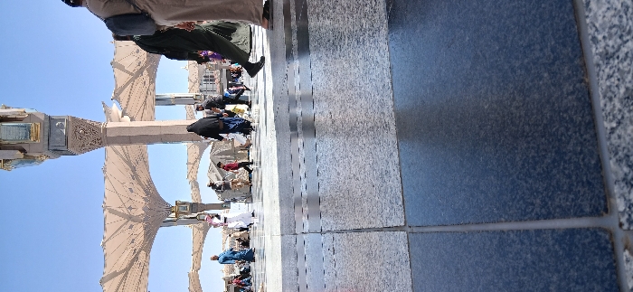 - "The image depicts an outdoor, public pedestrian area under clear blue skies within the courtyard of the Masjid al-Nabawi in Medina, Saudi Arabia" by FM-DHzUs1, licensed under CC BY 4.0