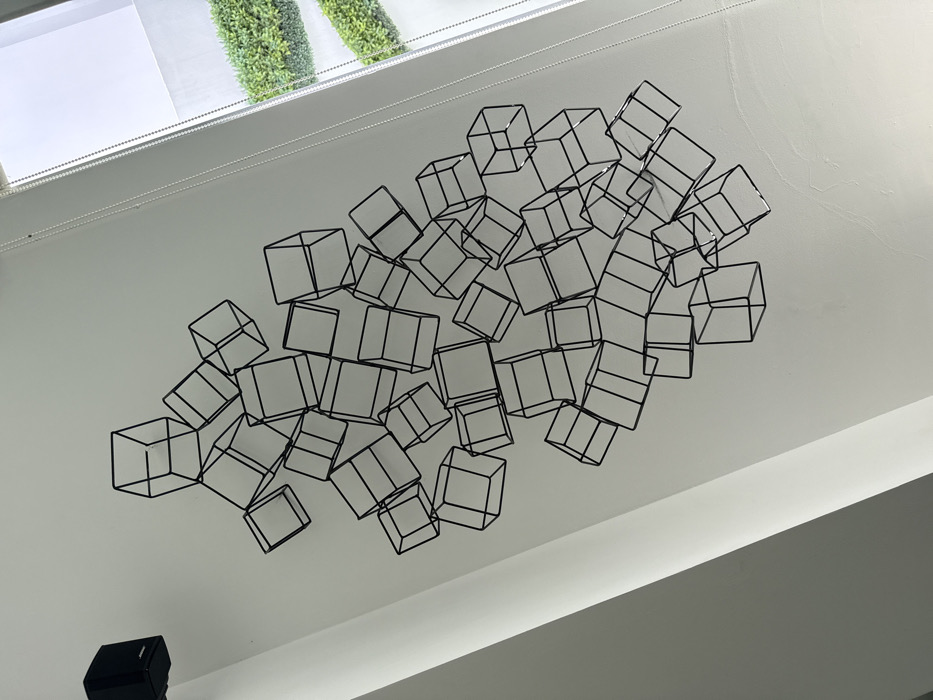 - "A white interior wall in Santa Clara Ocoyucan, Mexico, features a large-scale artistic installation composed of numerous interconnected black wireframe cubes, arranged in a cascading, irregular pattern from the upper left to the lower right of the frame" by FM-rjc8l1, licensed under CC BY 4.0