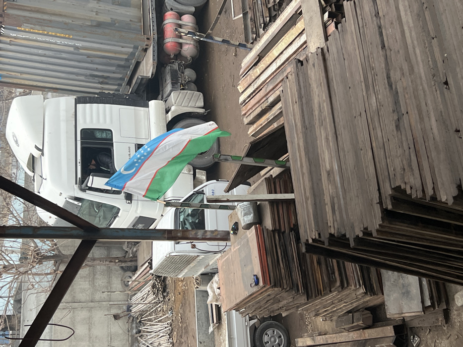 This image depicts an outdoor industrial or storage yard in Andijan City, Uzbekistan