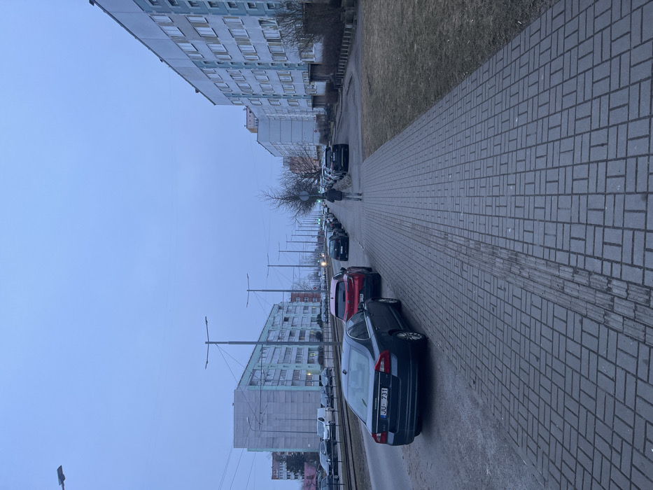 - "This image depicts an urban street scene in Liepaja, Latvia, observed from a low vantage point on a paved sidewalk, under overcast or twilight conditions" by FM-ctogf2, licensed under CC BY 4.0