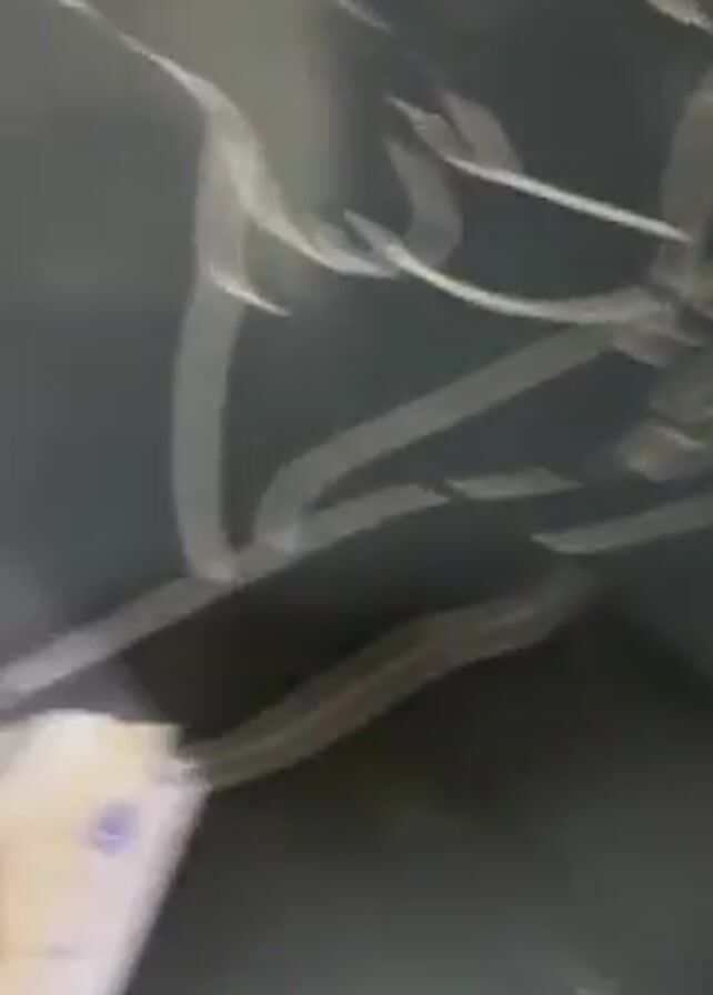 The video begins with a view of a dark, slightly dirty floor near a doorway and a dark painted wall with a white design on it
