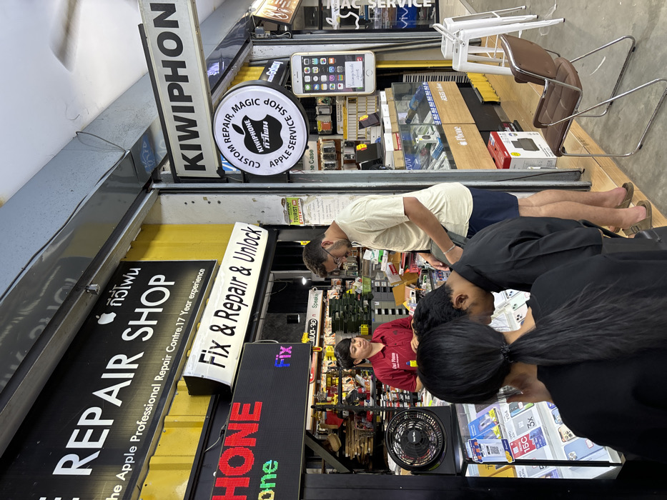 - "An outdoor electronics repair shop, identified as an 'Apple Professional Repair Centre' with 'KIWIPHONE' branding, is depicted in Thong Sala, Thailand" by FM-i1VQA3, licensed under CC BY 4.0