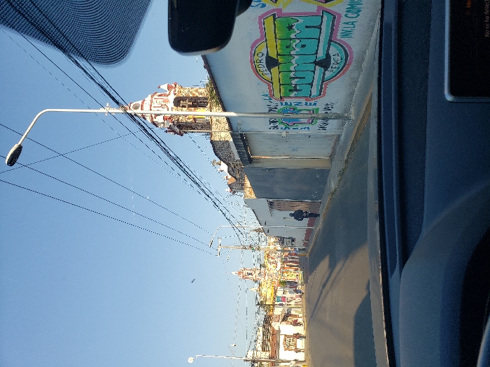 - "The image captures a street scene in San Andrés Cholula, Mexico, viewed from the interior of a vehicle, with the dark dashboard visible across the bottom" by FM-zKXAq1, licensed under CC BY 4.0