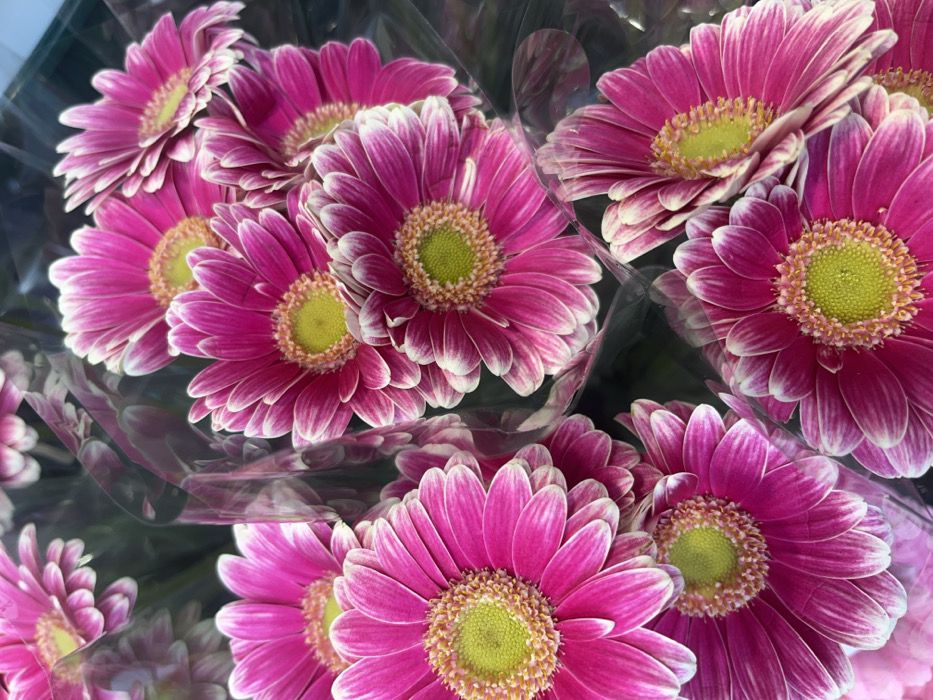 - "The image displays a dense arrangement of numerous gerbera daisies, contextually identified as being in Aiguilhe, France, though no specific geographical landmarks are visible" by FM-UzABM2, licensed under CC BY 4.0