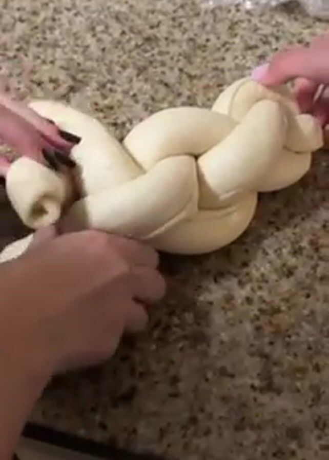 - "Two people are braiding a challah on a speckled tan countertop" by FM-7dNXv1, licensed under CC BY 4.0