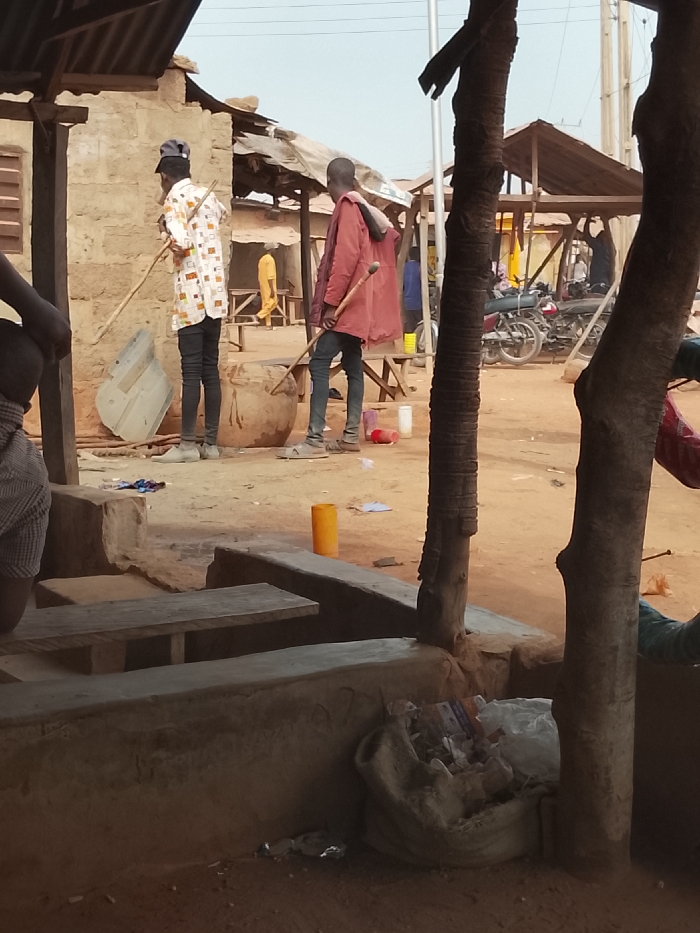 - "This image depicts an outdoor scene in Katcha, Nigeria, characterized by an unpaved, reddish-brown earthen ground under an overcast sky" by FM-AbeOs2, licensed under CC BY 4.0