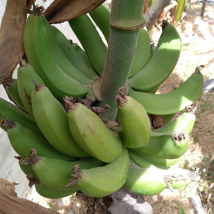 - "In Rayfield, Nigeria, a close-up image depicts a dense cluster of approximately 25-30 unripe, green bananas" by FM-Pg1Aq1, licensed under CC BY 4.0
