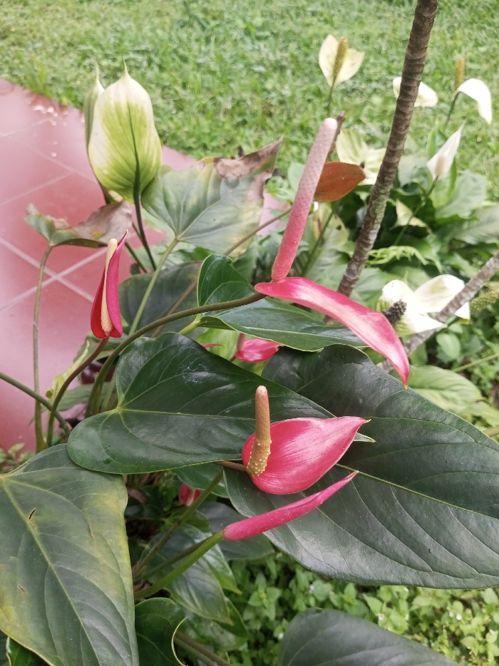 - "The scene depicts a dense cluster of *Anthurium* plants in an outdoor garden area located in Ciherang, Indonesia" by FM-65nep1, licensed under CC BY 4.0