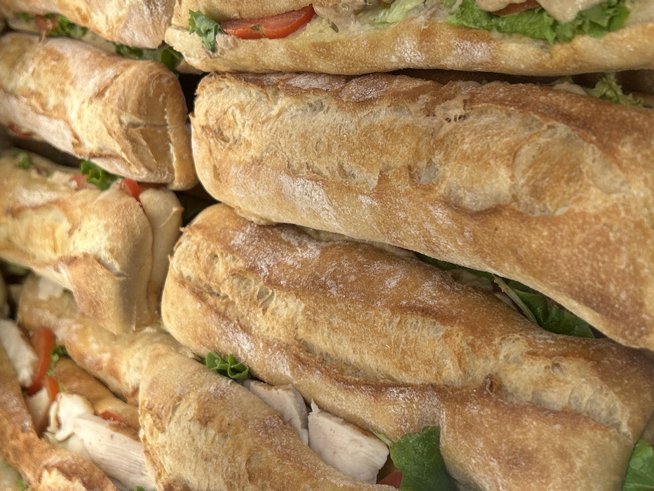 - "The scene, located in the city of Puteaux, France, depicts a close-up, high-angle view of multiple pre-prepared baguette sandwiches" by FM-vCdYG3, licensed under CC BY 4.0