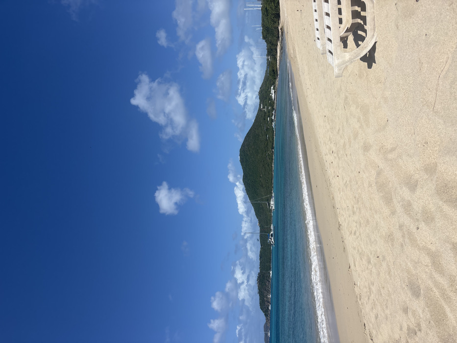 The scene depicts a sunny beach located in Spanish Town, British Virgin Islands