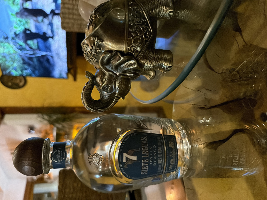 - "The image captures an indoor scene in Cuernavaca, Mexico, featuring a bottle of tequila and an ornate elephant figurine positioned on a reflective glass-topped table" by FM-MOb6B3, licensed under CC BY 4.0