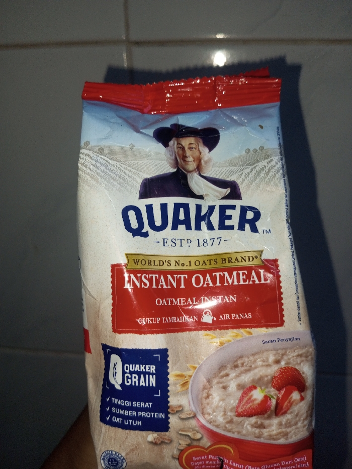 - "A package of Quaker Instant Oatmeal is displayed, featuring the brand's iconic Quaker man logo above the brand name" by FM-3YrlQ2, licensed under CC BY 4.0