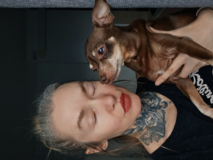 - "This image depicts a close-up indoor portrait of an adult female holding a small dog, purportedly located in the city of Saint Petersburg, Russia" by FM-Uibel2, licensed under CC BY 4.0