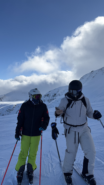 - "Two individuals in full ski gear are positioned on a groomed snow-covered mountain slope" by FM-XKG3L2, licensed under CC BY 4.0