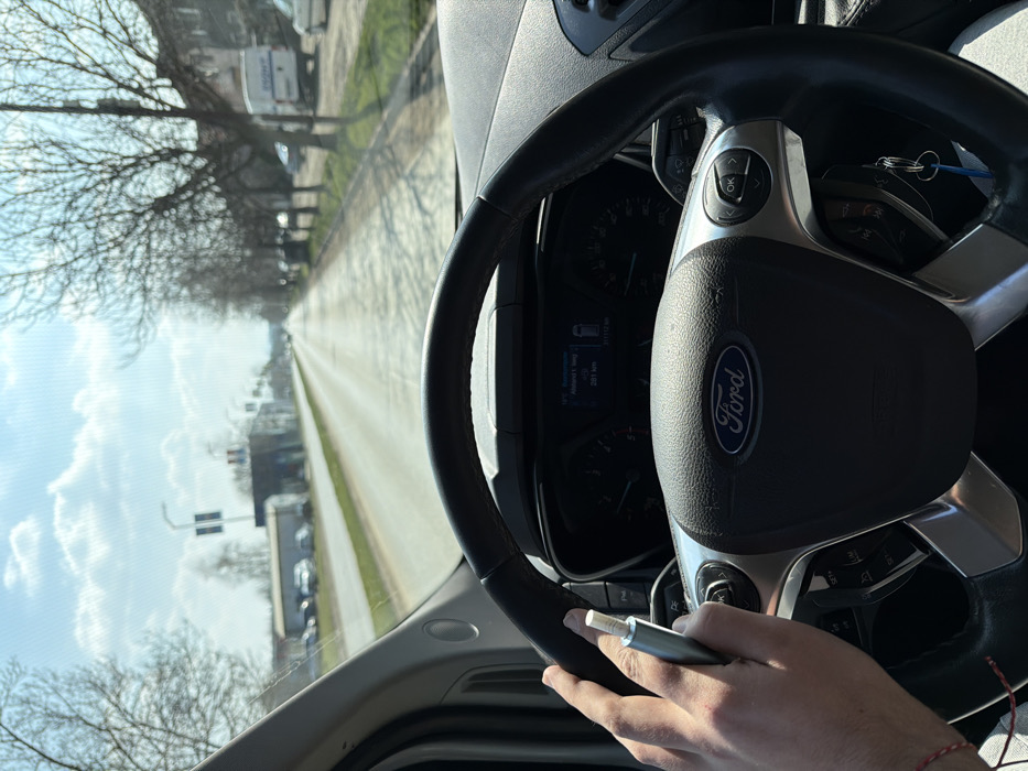 - "The image captures a first-person perspective from the driver's seat of a Ford vehicle, facing forward on a paved road in Montana, Bulgaria, under a clear, bright sky with scattered white clouds" by FM-s2kFx1, licensed under CC BY 4.0