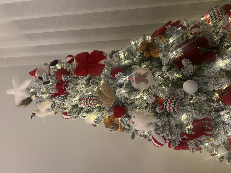 - "A Christmas tree is decorated with white flocking and various ornaments" by FM-2bEk83, licensed under CC BY 4.0