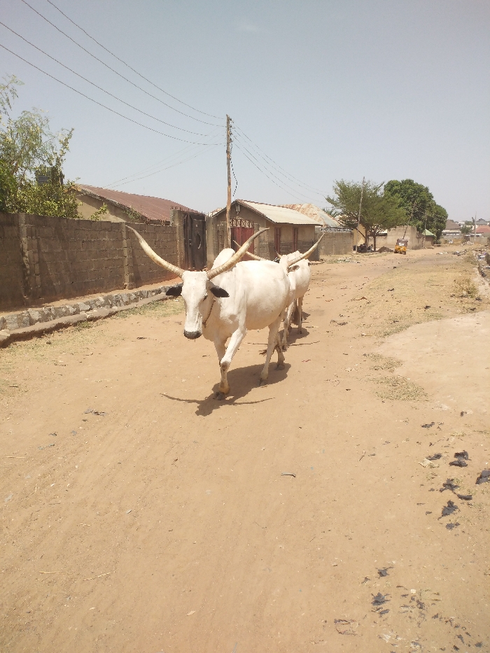 - "The image depicts three white zebu cattle walking along an unpaved dirt road in the City of Unknown, Unknown" by FM-MFWzc2, licensed under CC BY 4.0