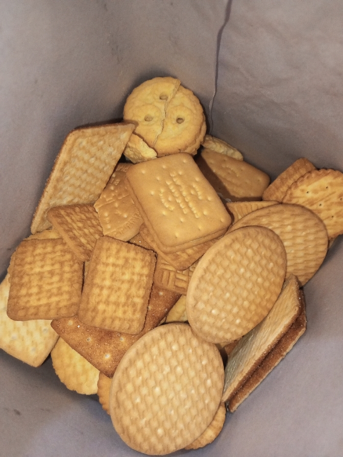 - "A heap of assorted crackers fills a tan-colored bag" by FM-XxpLF3, licensed under CC BY 4.0