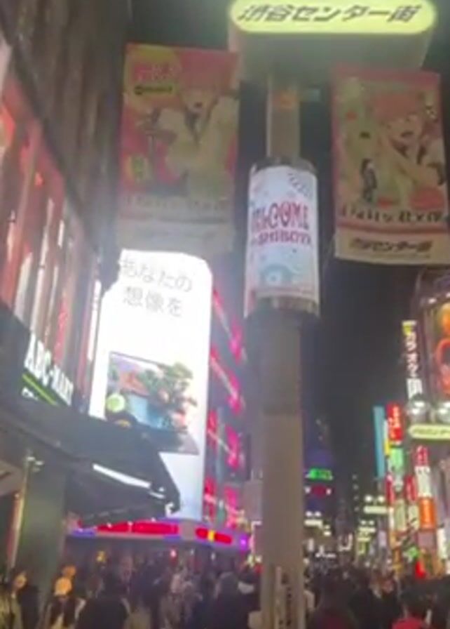 crowded street at night in what appears to be a busy urban area, potentially in Japan