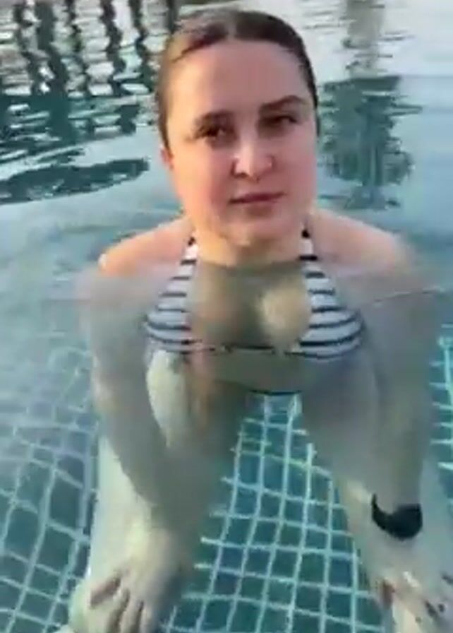 A woman is in a swimming pool