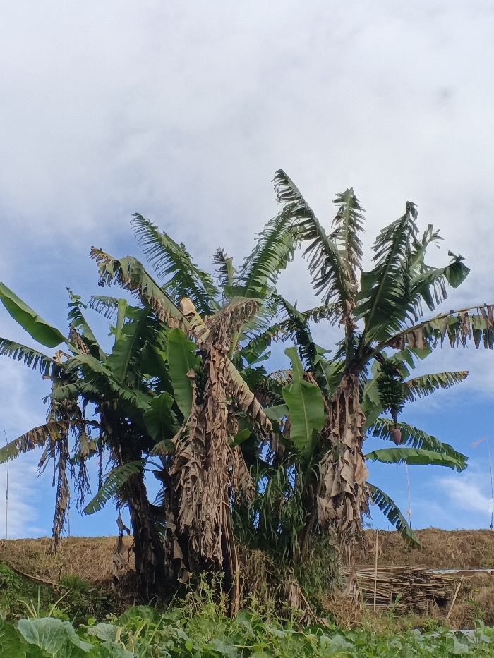 - "Three banana trees dominate the scene against a sky with scattered clouds" by FM-gK7XI2, licensed under CC BY 4.0
