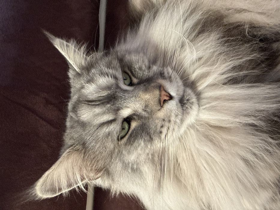- "An adult, long-haired domestic cat, likely a Maine Coon, is depicted in a close-up, head-on portrait" by FM-M9SBN2, licensed under CC BY 4.0