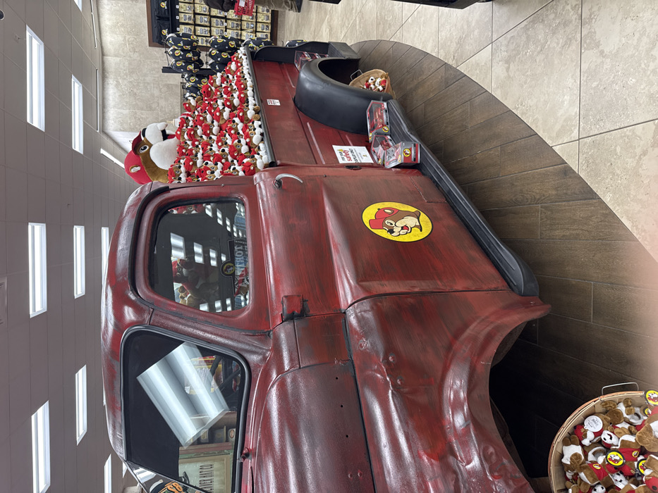 - "An indoor scene depicts a red, vintage-style pickup truck serving as a merchandise display within a Buc-ee's travel center" by FM-YqDHq2, licensed under CC BY 4.0