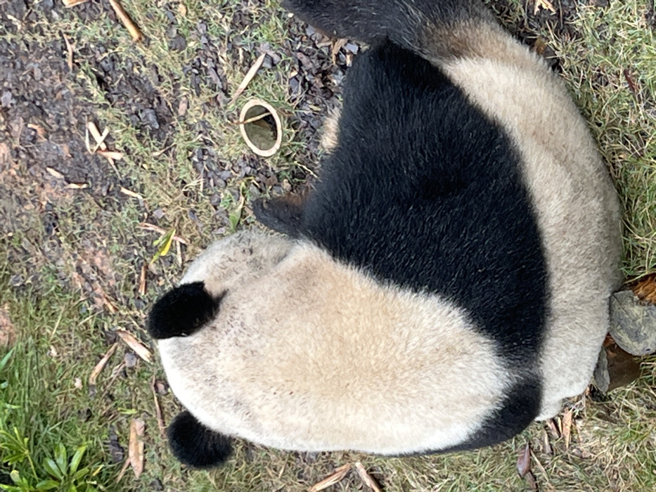 - "A giant panda is depicted lying on its back in a semi-recumbent position, viewed from an overhead perspective, at the Chengdu Research Base of Giant Panda Breeding in Chengdu, China" by FM-8oYor1, licensed under CC BY 4.0