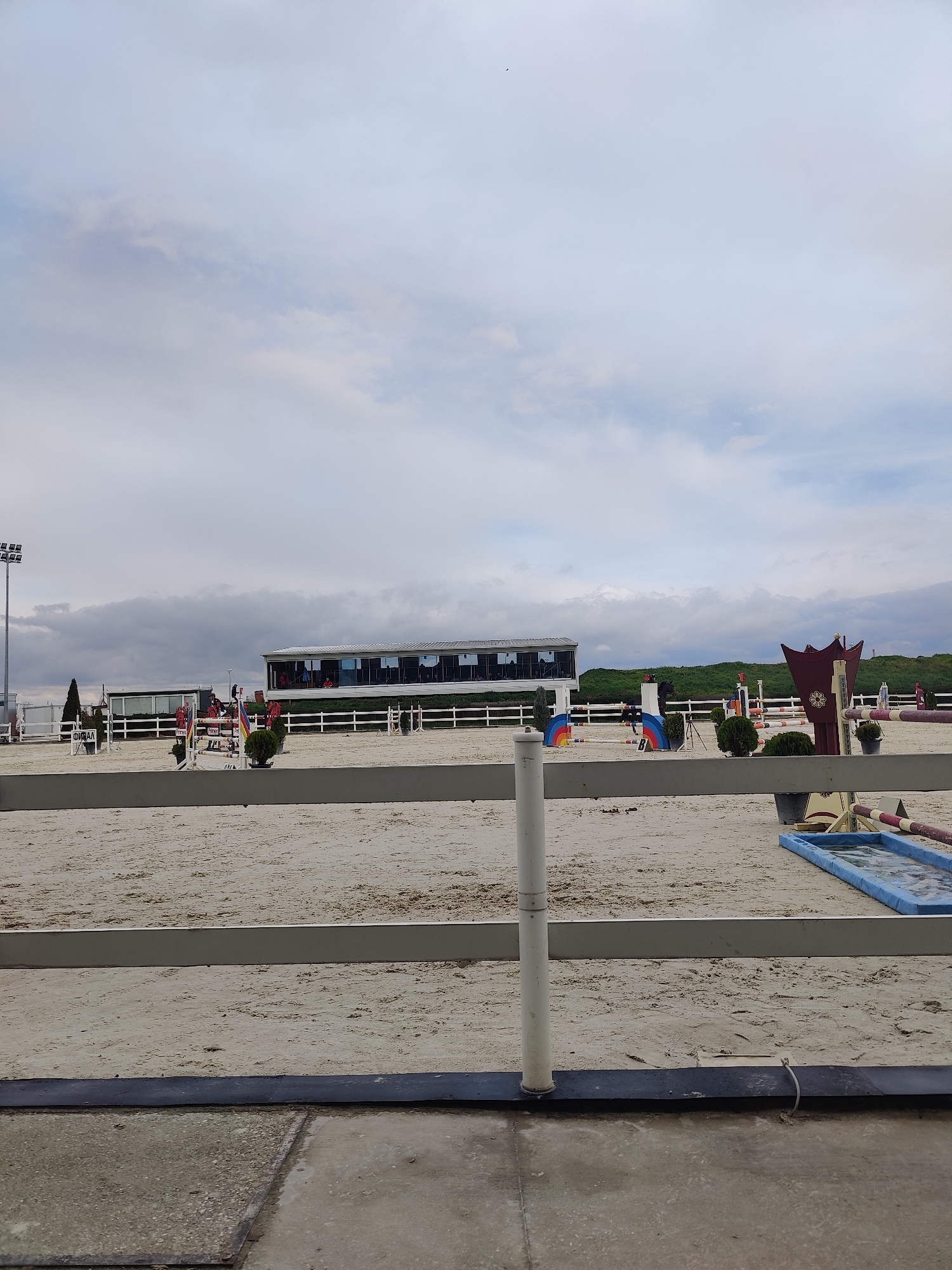- "The image captures an outdoor equestrian show jumping arena located in Tsaratsovo, Bulgaria, under an overcast sky with light grey clouds" by FM-jrZSU2, licensed under CC BY 4.0