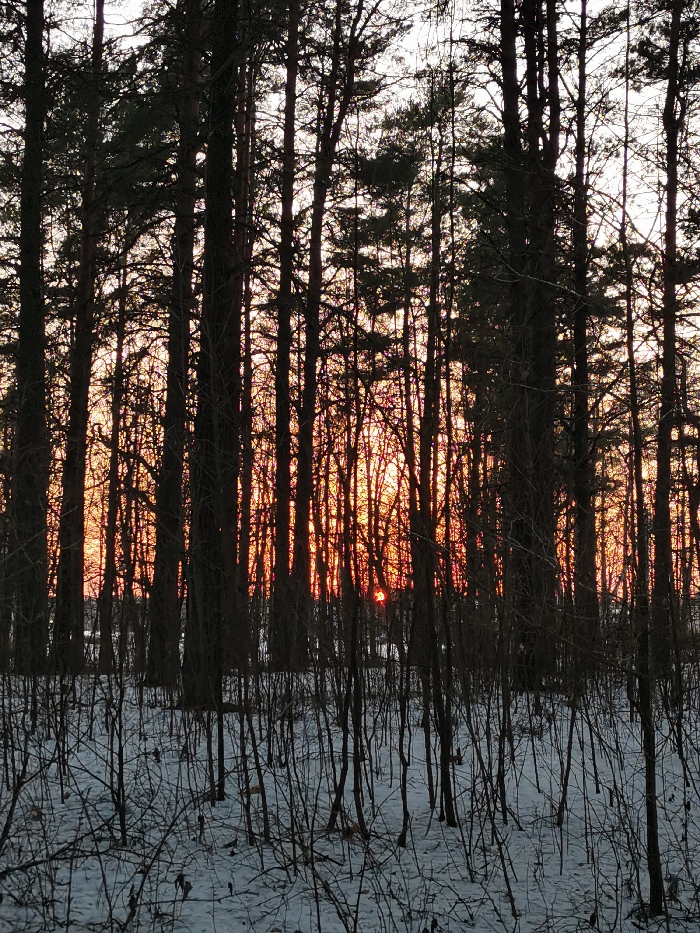 - "The image presents a winter forest scene in Парэчча, Belarus, during either sunrise or sunset" by FM-O7DDu2, licensed under CC BY 4.0