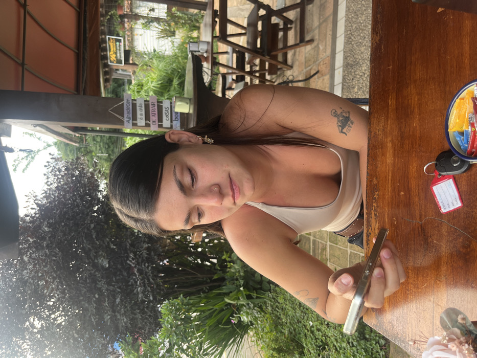 - "The scene depicts a female individual seated at a wooden table in an outdoor or semi-outdoor cafe in Ilhabela, Brazil" by FM-vIRwr1, licensed under CC BY 4.0