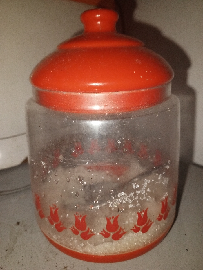 - "A clear cylindrical plastic jar, featuring a red domed lid and a red base, is centered in the frame" by FM-GFtw32, licensed under CC BY 4.0