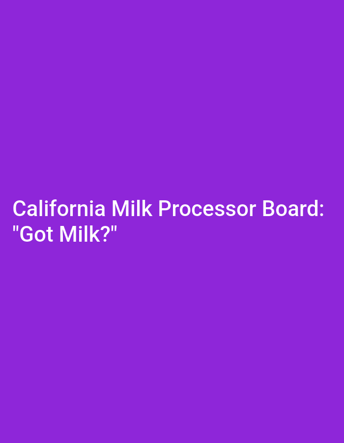 The image displays a solid, uniform purple background. Centered on this background, in white sans-serif typeface, is the text "California Milk Processor Board: 'Got Milk?'". No people, physical objects, or environmental elements are depicted. The scene is devoid of discernible actions or interactions. No visual information within the image indicates a specific geographic location, including the city of Mansehra, Pakistan.