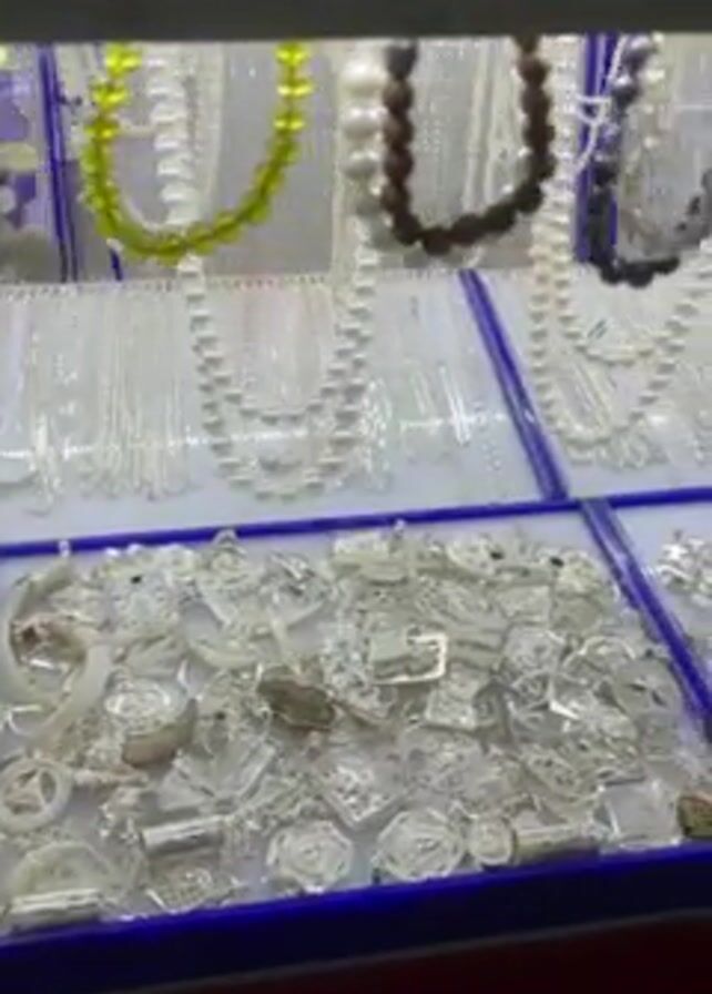 The camera pans across a jewelry display case