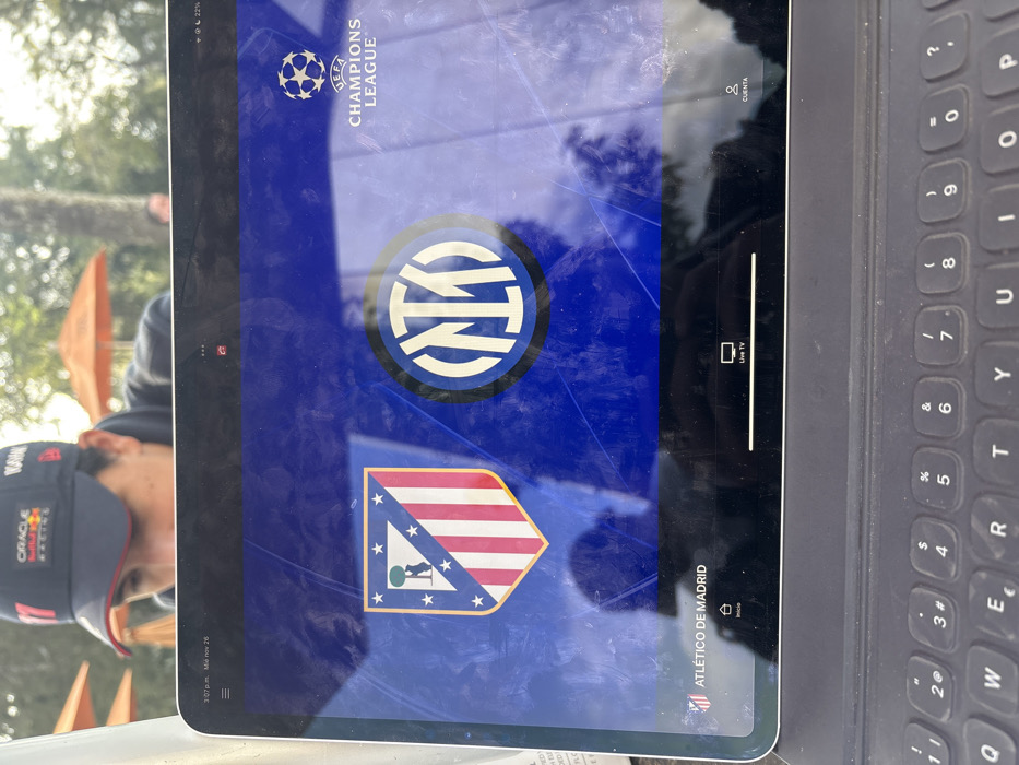 tablet displaying a UEFA Champions League advertisement for a match between Inter Milan and Atlético de Madrid