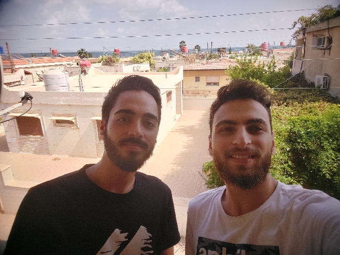 - "Two young adult males are prominently featured in a daytime selfie, positioned against an urban backdrop identified as Ain az-Zarqa, Syria" by FM-XRmlh1, licensed under CC BY 4.0