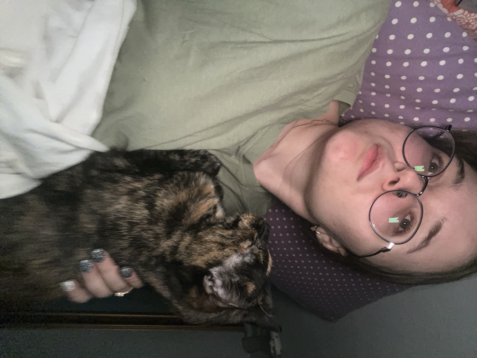 - "A person with glasses and short brown hair lies on a polka-dot pillow" by FM-Jh9B72, licensed under CC BY 4.0