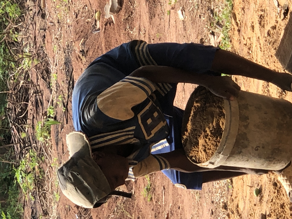 This image, taken in Alor, Nigeria, shows one individual engaged in manual labor outdoors