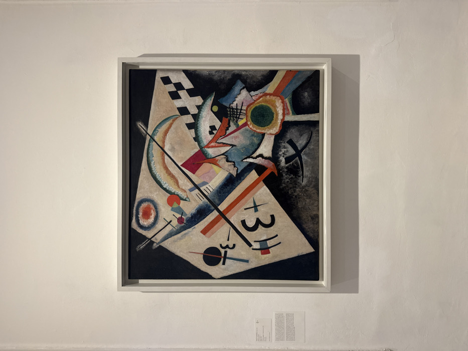 - "An abstract oil painting by Wassily Kandinsky, titled "Composition VIII" (1923), is centrally displayed on a plain white wall within a simple white frame" by FM-yjK1X2, licensed under CC BY 4.0