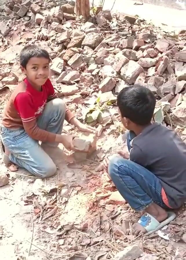 - "Two boys are building a small tower out of bricks in a dirt-covered area" by FM-xENTm1, licensed under CC BY 4.0