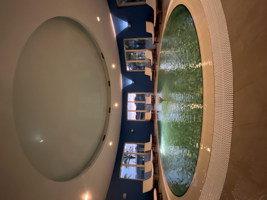 An indoor, circular spa facility in Boreti, Montenegro, is depicted
