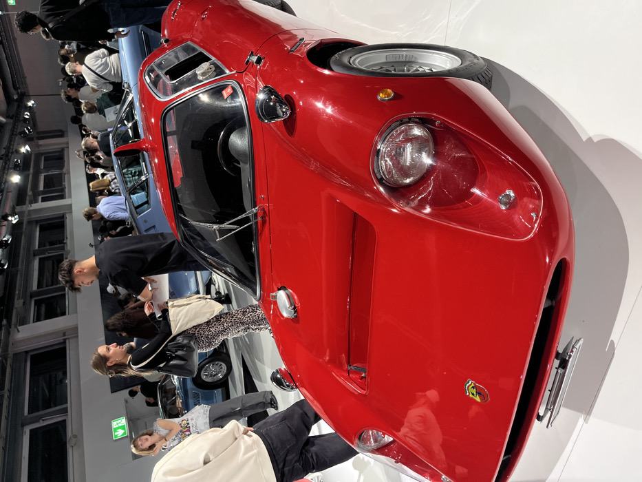 The image portrays an indoor car exhibition in Zurich, Switzerland