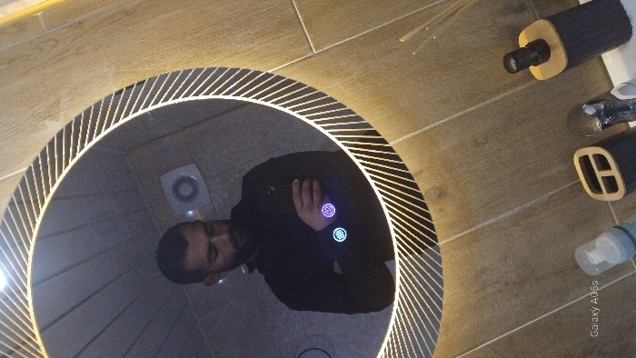 An individual with dark hair and a beard, wearing a dark long-sleeved garment, is depicted in a mirror selfie taken within a private residence in Oreshene, Bulgaria