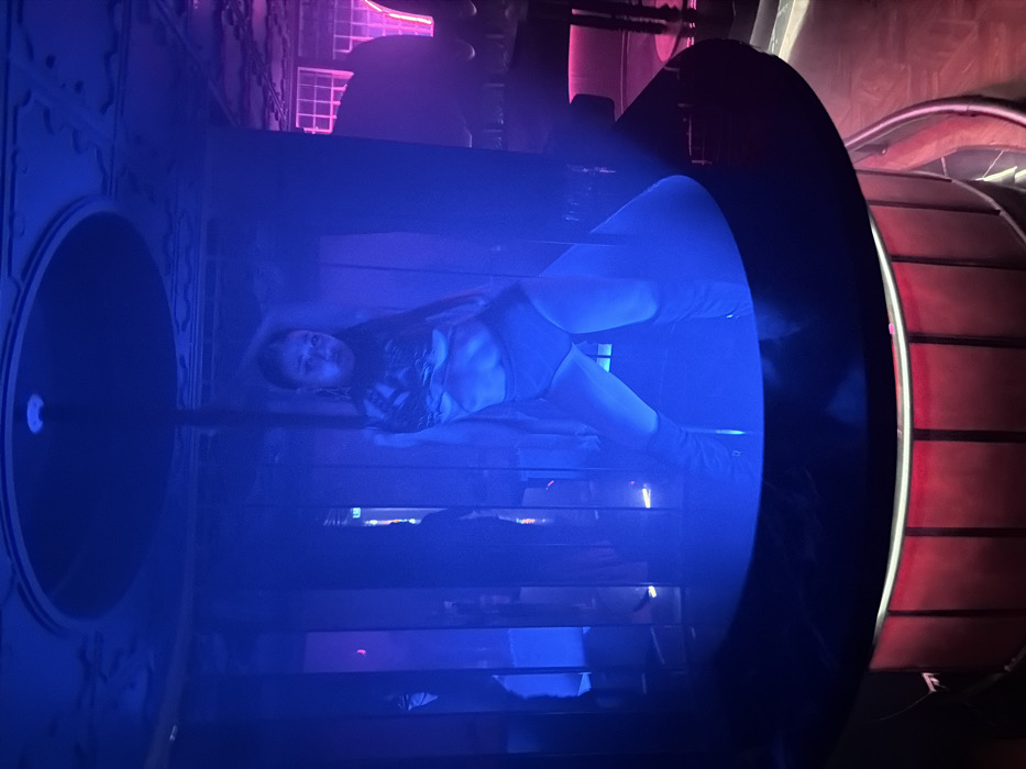 - "An indoor scene features a single female individual on a circular stage under predominantly blue and red artificial lighting" by FM-OZmoc2, licensed under CC BY 4.0