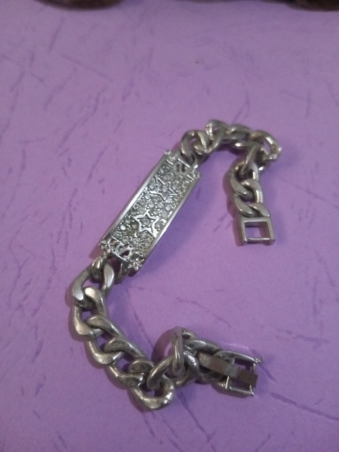 - "The scene depicts a silver-colored metal bracelet positioned against a light lavender, subtly textured surface in Ciherang, Indonesia" by FM-VgsoJ2, licensed under CC BY 4.0