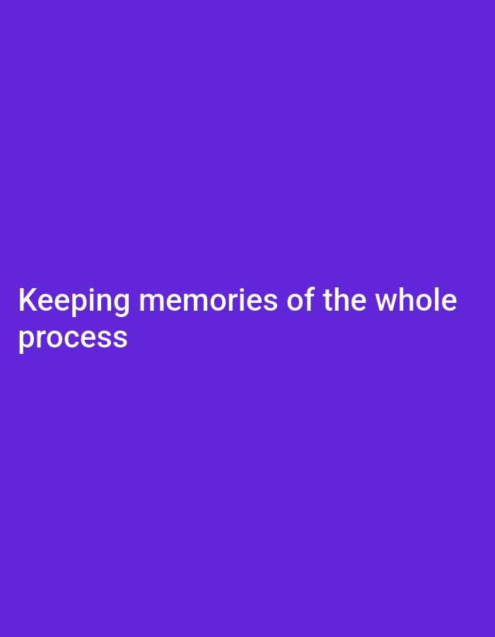 The image displays a solid purple background. White text, "Keeping memories of the whole process," is centered horizontally in the lower portion of the frame. No other subjects, objects, people, actions, interactions, or environmental details that would indicate a specific location in Adankolo, Nigeria, or any other physical setting are discernible.