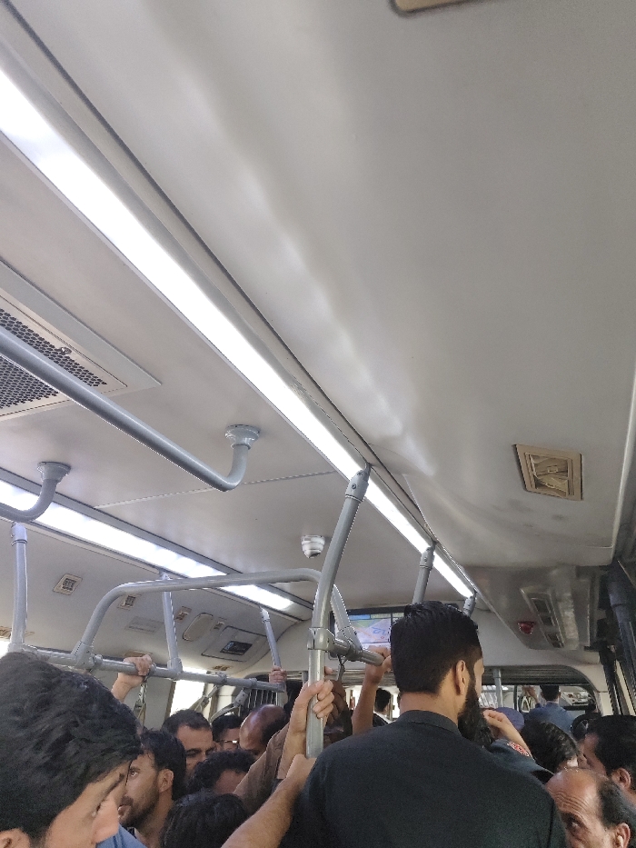 - "This image depicts the crowded interior of a Metro Bus in Rawalpindi, Pakistan, viewed from a passenger's perspective looking towards the front or middle of the vehicle" by FM-uPtwu2, licensed under CC BY 4.0