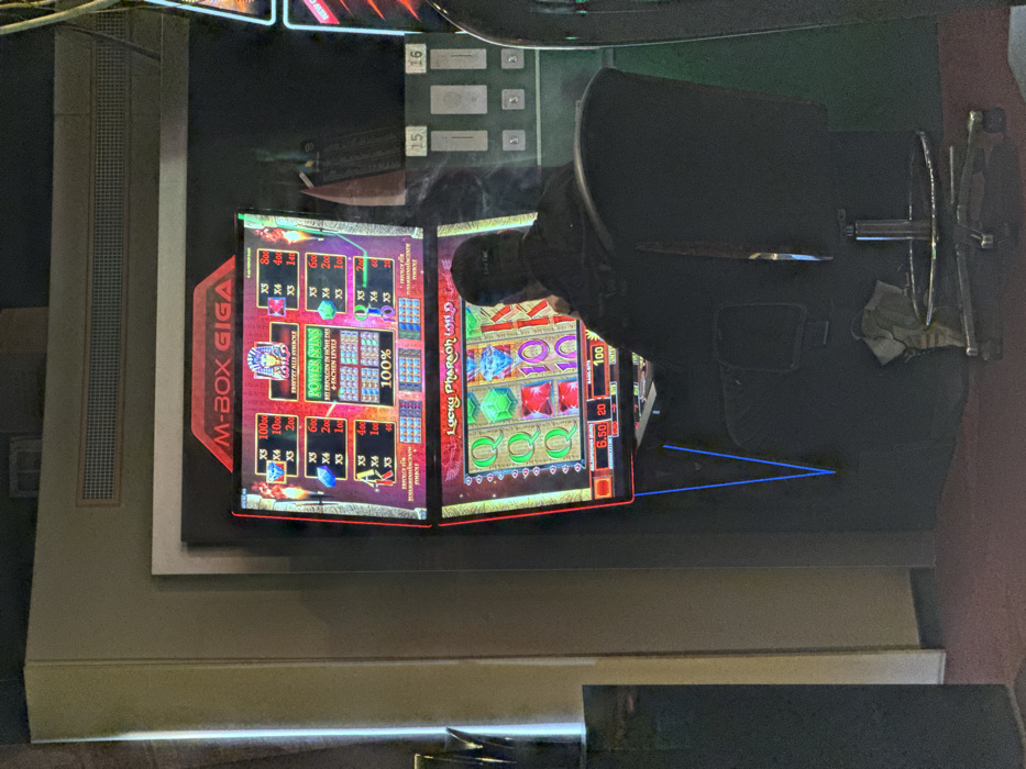 - "The image depicts the interior of a gaming establishment in Remscheid, Germany, likely a Spielhalle or casino, characterized by dim ambient lighting offset by the bright glow of electronic slot machines" by FM-xKTK43, licensed under CC BY 4.0