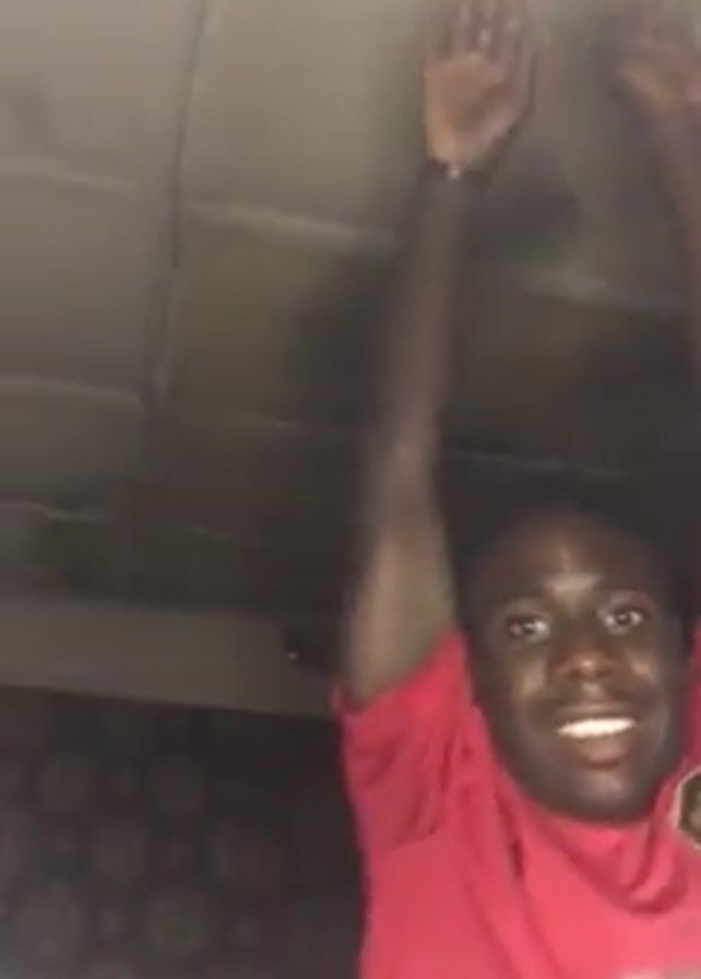 - "A man in a red shirt is looking at the camera and smiling, then reaches up and touches a ceiling" by FM-dfcfA3, licensed under CC BY 4.0