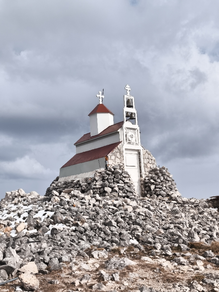 - "The image displays a small, white Orthodox church or chapel located atop a rocky elevation in Mali Mikulići, Montenegro, under an overcast sky" by FM-gvviH3, licensed under CC BY 4.0